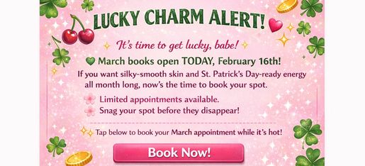 Book a Brazilian wax this March and receive a FREE Lucky Charm Add-On 🍒